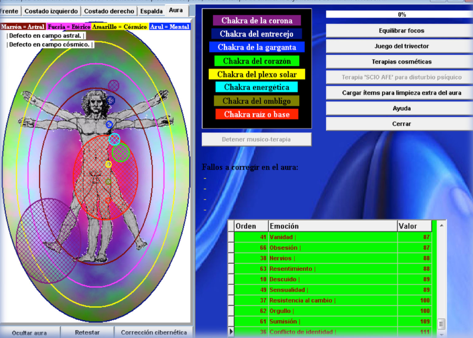 Este programa especifica las alteraciones y bloqueos en los focos energéticos (chakras).
